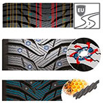 Использована особая технология на основе увеличенной площади кромок. Благодаря ей улучшаются сцепные характеристики покрышек на заледенелых трассах, повышается стабильность автомобиля при прохождении поворотов