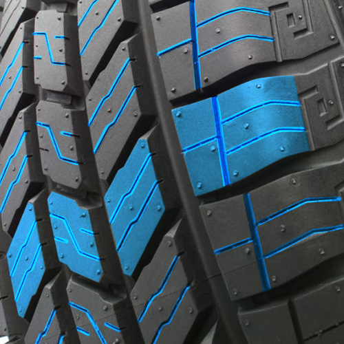Специально усиленные блоки протектора создают более широкую рабочую поверхность, за счёт чего нагрузка на каждый элемент распределяется равномерно. Такой подход не только улучшает связь с дорогой, но и снижает вероятность ускоренного износа. Автомобиль с этими колесами демонстрирует стабильное поведение при маневрировании, точнее реагирует на команды водителя и сохраняет уверенную курсовую устойчивость даже на высокой скорости. Для тяжёлых и мощных внедорожников это качество особенно ценно, так как обеспечивает безопасность при полной загрузке и активной эксплуатации.