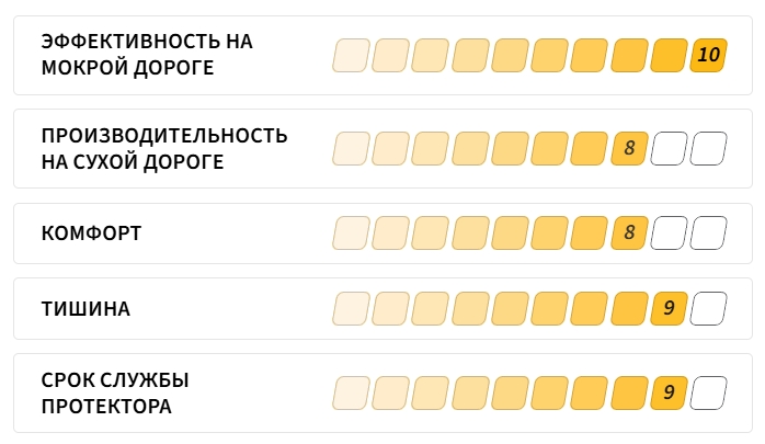 Наличие четырёх широких продольных траншей позволяет быстро разрушать водную пленку и предупреждать риск аквапланирования. Влага и грязь быстро выводятся из зоны контакта, что позволяет сохранять плотный контакт на мокром покрытии и предотвращает потерю контроля. Благодаря этому покрышка подходит для эксплуатации в регионах с переменчивыми климатическими условиями, обеспечивая уверенное вождение в дождливую погоду и в межсезонье.